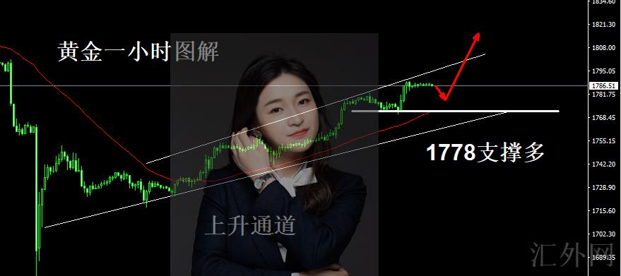 黄金一小时k线一浪好于一浪,接连大阳线上升,保持买方趋势不变,隔夜黄金价格更是逼差不多1800的节奏,以下支撑点持续的攀升,50均线呈现一股劲的往上倾斜,当前没有掉头的痕迹,支撑线1778一线也是坚挺着,买方就是油门踩见底的节奏,但全网看涨,也得谨防跌穿1770一线,当前持续维持买方不变,1778直接干多