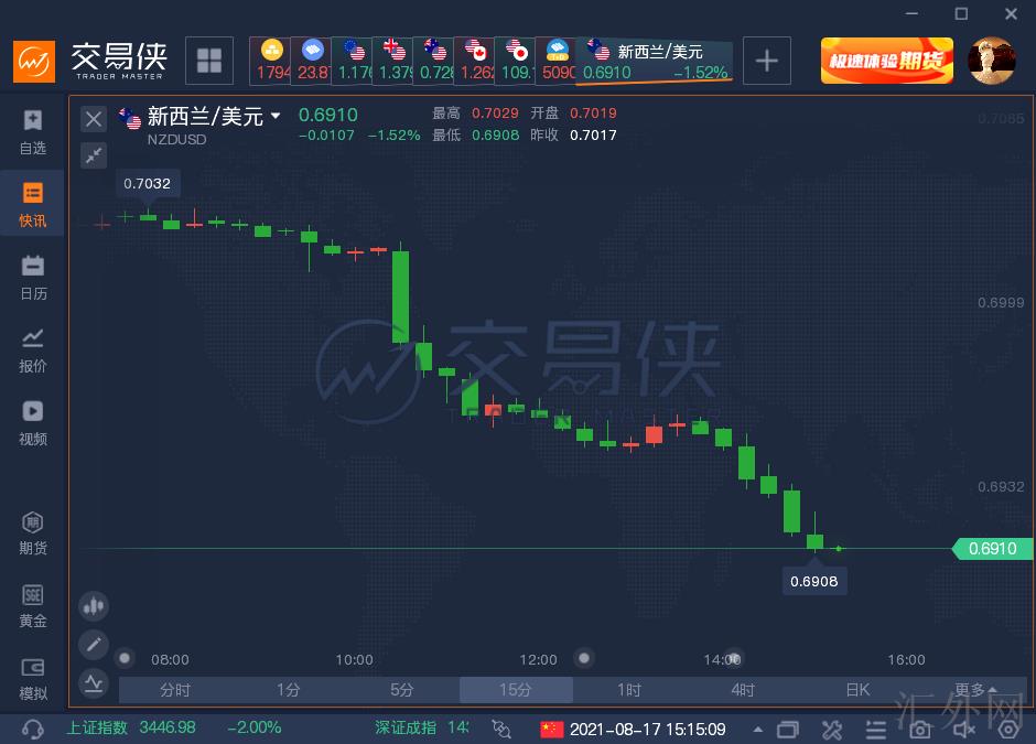 受此消息影响,汇市避险情绪回暖。纽元/美元短线快速走跌,失守核心的0.70关键点位,截止发稿,日间降幅扩大到1.5%,现报得0.6910;纽元跌向三周新低,料报3月迄今最大单日降幅。澳元/美元跌穿0.73,跌向九个月低位,为7月21号以来以来第一次。