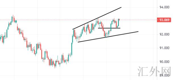 美元当下右边敞口已经有了喇叭形态,是不是这个名词听起来很好笑?我也这么认为,尽管行情上并没有极端推涨,但得到支撑后续的反涨是大约率要去突破上周高位的,而且更深一步向着94出发,大家注意看吧,迅速就能印证我为何否定掉黄金和美元是同涨讲法了,要说昨天美元的上涨程度,黄金只给你下挫15美金,你找谁说理呢?