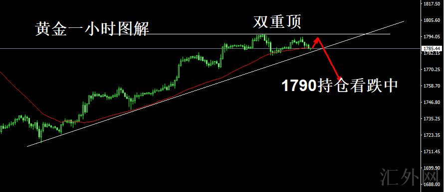 黄金一小时k线又一次遭遇压力位,1795一线均为很难迈过的关口,下挫的量能马上起步,同期上方显著的双重顶结构,日间持续看跌为主,50均线已经显现显著的掉头态势,往上倾斜直接被摁下暂停键,直接被摁在地板上冲突,空,1790持仓看空中