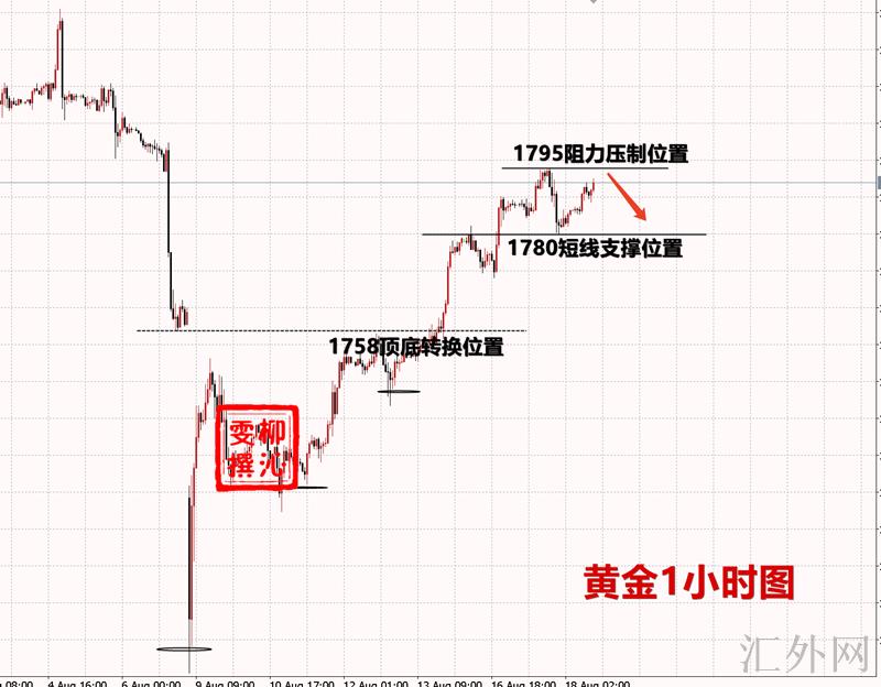 而今夜如何看待,第一刚刚我们提及1718以及1741这个两个1小时级别低位接连形成的趋势线,在今日是有所朝下击穿的,所以上方的1792~1796依旧会较大约率有压力存在;而其他思路因为黄金的以下支撑,我们可以从1718拉斐波那契回踩线到1795,一般的支持在38.2%~50%回踩位,然而这仅限于短线支撑,毕竟整体行情依旧卖方趋势。