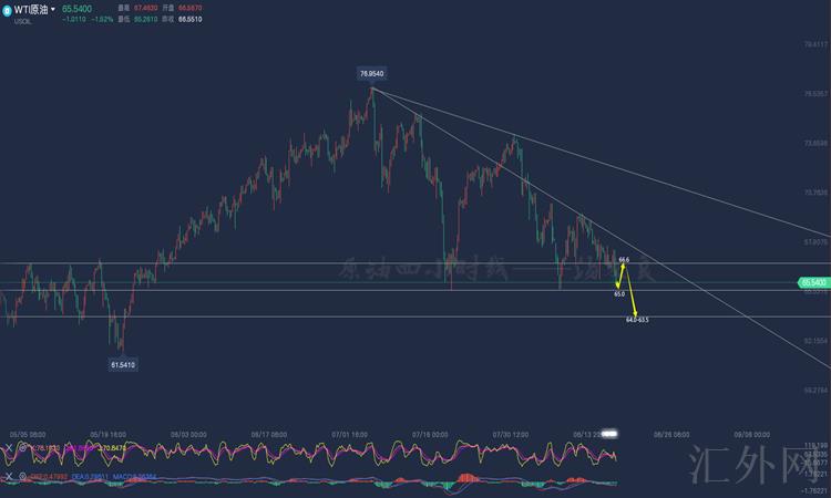 原油低点整理拉锯阶段,小周期弱势看空,4小时中轨形成抑制,而68.10是短时间强弱临界点,以下则是承受了30周线的支持,这周多次靠近后深陷震荡,当前处在趋势突破前夜的阶段。短线会深陷迟缓拉锯震荡。一旦突破颈线就会形成增速卖方回调,短线操作临时保持在68.10以下看跌思路不变。