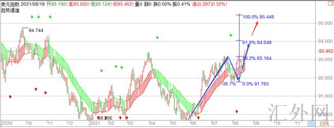 我们当前可以关注日K图,这里0.382名置93.2这里已经立住,所以美元下个计划将令在0.618名置94.0这里,美元这里最后关键点位是95.4。