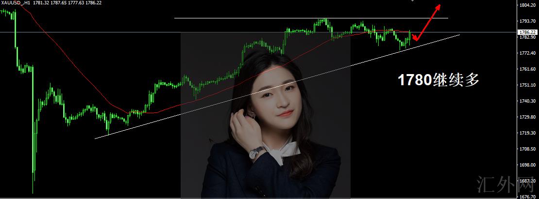 黄金一小时k线直接拔地而起,大阳线直接竖起了,旱地拔葱,这就是买方,强调无数次黄金未能跌穿1770一线,那就是多,接连两次均为如此,这是显著的买方,同期50均线持续维持倾斜往上,稳如磐石,大阳线直接踩着趋势线的下边缘,多,回调1780持续多