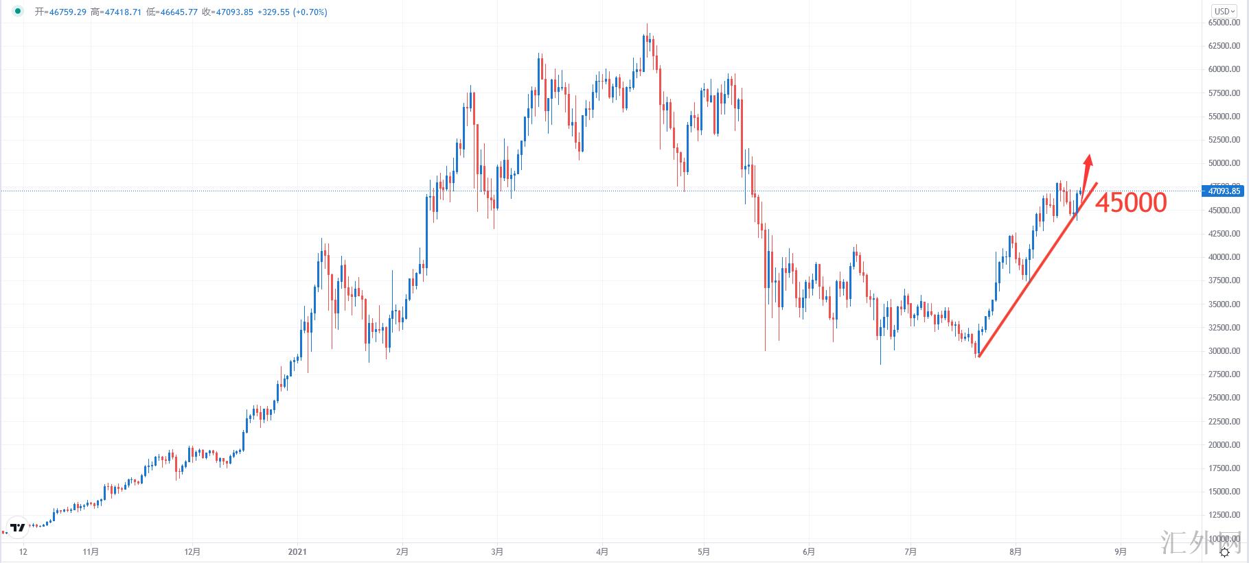 【策略逻辑】:当前市场局势呈现买方流向,推荐投资人可斟酌注意45000左右买涨,止损43000左右,止盈49000左右。