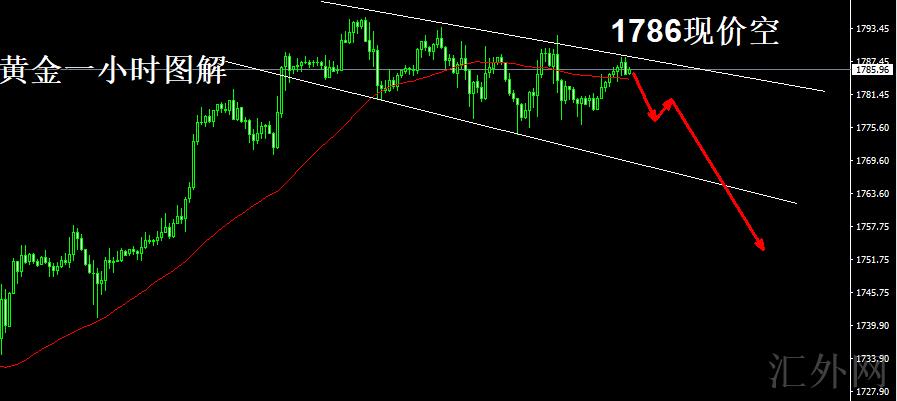 黄金一小时k线上方压力任然强劲,这周k线多次在1790以下运行,均为未能持稳1790,更别谈1800一线,对于买方来看就是一堵墙,始终很难跨越,50均线已经显现显著的朝下倾斜了,起码往上倾斜被摁下暂停键,高位持续减弱的痕迹,空,直接1786现价空,同期持稳1790直接就是反手多
