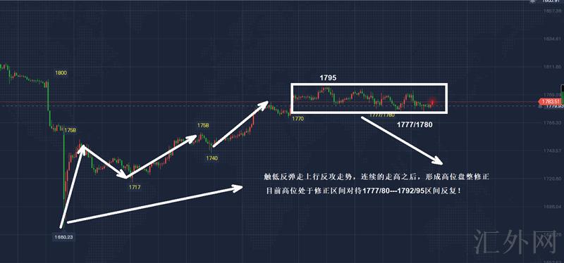 如下图,星期一本人预期行情多空皆有机会,环绕1790~1765区间内布局,行情按计划震荡区间内运行!
