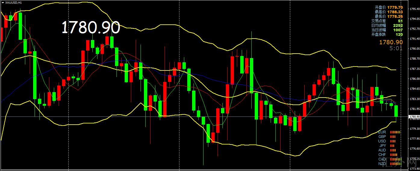 美市盘中,黄金现货来回拉锯,收盘收报得1781.06美元每盎司,上升0.88美元或0.05%,日间最高刷新1788.33美元每盎司,最低刷新1778.22美元每盎司。这周,黄金现货收盘上涨1.61美元或0.09%。