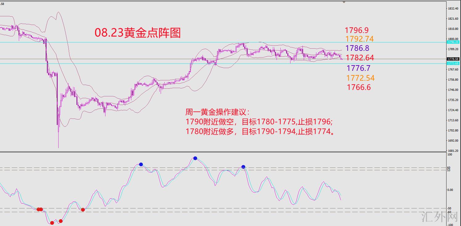 点阵图支撑点1766.6,1772.54,1776.7,多空分界1782.64,压力位1786.8,1792.74,1796.9