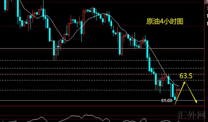 第一:原油上周均为接连看跌思路,价格从69开始接连被遇阻,连续顺势空均有获有好处空头间,星期五更是在凌晨朝下击穿新低,日线图形成连阴的卖方局势,有希望更深一步下跌试探低位,价格依托日线图MA5均线下遇阻走跌,阻力63.5-63左右持续回弹空。