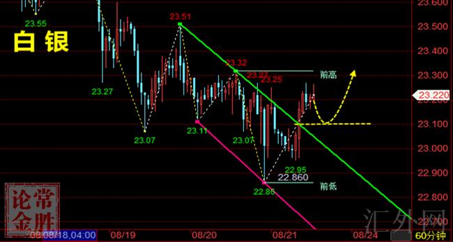 今天依据黄金分割轴心点指标体系表明,日间三关口键位置,以下支撑为22.88-22.77-22.60,上方压力位23.22-23.33-23.49.中轴水平23.05。预期今天白银回弹终结后,最终增速探前低位的几率较大。
