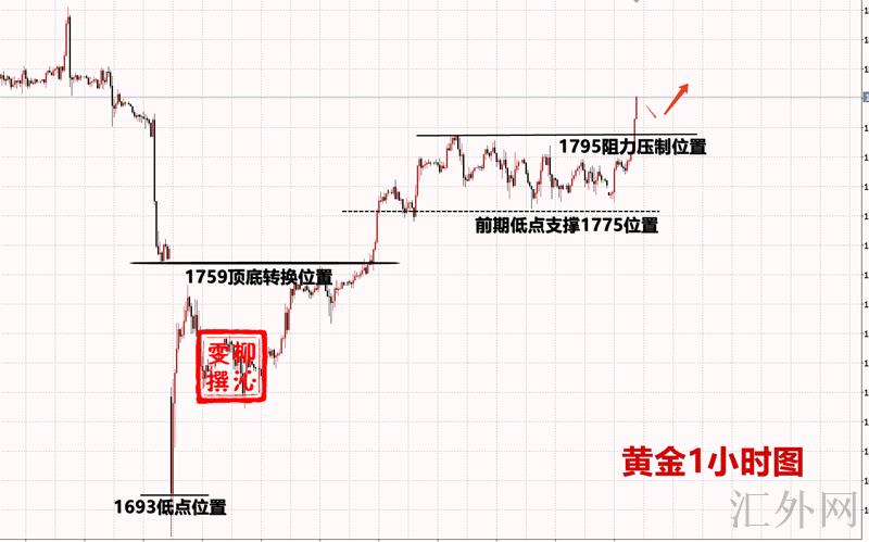 黄金价格击穿上升,4小时K线大阳线竖起,买方具备了强度和保持性,充分必要条件均满足了。击穿1800,就击穿了1916和1832连线的趋势线抑制,同期整数关键点位压力击穿,又一次回归千八时代。所以,黄金接下去,我们认认真真,扎扎实实干多。