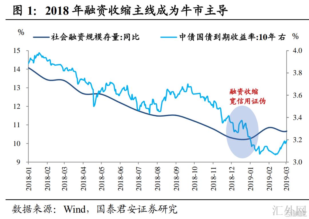 2018年11月社融增速降到10.3%,创历史新低,社融断崖式下跌已逾一年,“融资缩减”形成2018年债牛主线,中央银行货币信贷座谈会召开,强调“通过信贷、债券、股权‘三支箭’有力支持实体经济”,清晰放出宽信用信号。
