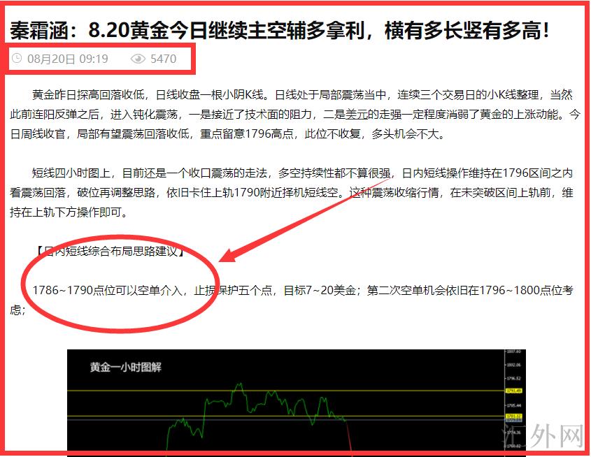 如下图,上周星期三黄金行情依旧和前几天相似,一如既往的依照我这边思路在运转!公开推荐1790点位开空,午盘按计划给到,后续行情到达1880点位,一单可以拿下10个点利润,且可以反复做两波行情!假使你关注了我这边的公开思路,今日空单利润绝对也可以拿到,每天公开送利是常态!