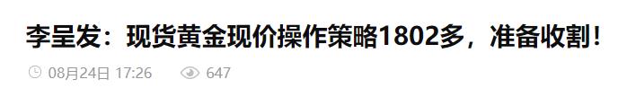 欧盘给到1802多单,美盘按计划涨到1809一线获利7美金,黄金守稳1800支撑,坚定看涨即可,多单下去就是利润,跟上就是赚到,欧盘给到的现价多,各投资朋友有充足的时间进场,若依旧方向做反,只能拍大腿!从盘面来说,沿着15均线买涨即可,回踩就是市场数钱的可能,1800一线持续买涨,上方第一计划位1815,立住1815黄金将面临波段上升,波段利润就在这几天将来临,底部可以布局几单长线多,跟随呈发拿下8月末的波段。当前手上有低点空单和高点多单不晓得如何处理或者最近显现严重亏损可添加李呈发指导【点击头像】谋求帮助,我会抽空予以我粉丝最大的帮助。