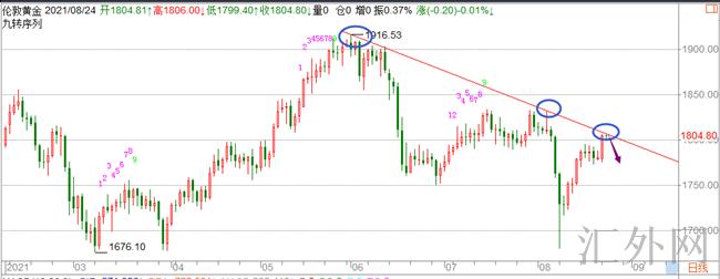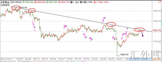 可以目睹当前黄金正处在趋势线上方阻力点,所以这里黄金我肯定不是推荐买涨的,起码1800上方是千万不要买涨的。