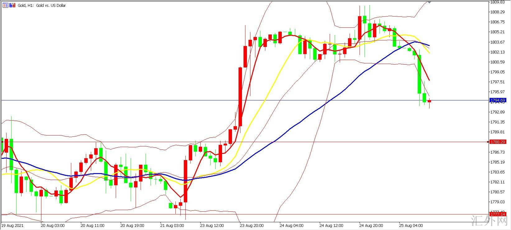 星期二黄金现货适当下挫,收报得1802.90美元每盎司,盘中最多刷新1809.63美元,为8月5号迄今最高。投资人等候这周晚些时候举办的年度杰克逊霍尔研讨会,以更深一步了解美联储什么时候开始削减债券买入范围。市场预期在美联储主席鲍威尔的发言中,预期在减仓机会困难上将维持含糊,但不能完全消除他意想不到有所宣布的机会性。