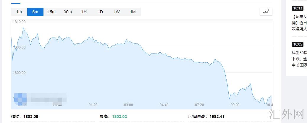 星期二,黄金现货先涨后跌,日间绝大部分时间运行在1800美元关键点位之上,但最高仍未能击穿1810美元,黄金现货微跌0.1%,报得1802.4美元每盎司。