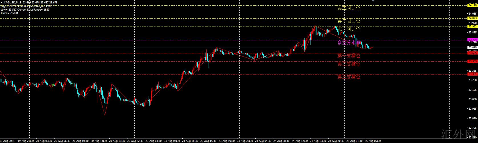 白银关注能否显现比较理想的行情,价格二次摸底,给到新的上涨机会。白银日间注意24.1左右压力情形,只有击穿24.1才可有希望打开上涨空间,以下支撑注意23.5/23.3,持稳可以轻仓多单介入,计划则是23.9/24.1