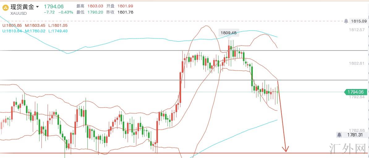 黄金昨日连续居于1800上方震荡,夜里受美元再回修影响,上方也最多欲试探1810阻力,但最终仍未能击穿,且有遇阻回修,日K线最终收得一小阴线。