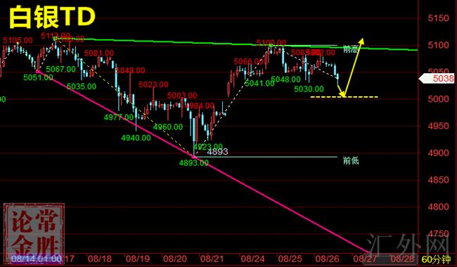 白银TD今日策略:5020-5030左右可以直接多,止损35个点,计划看5100,突破看5200