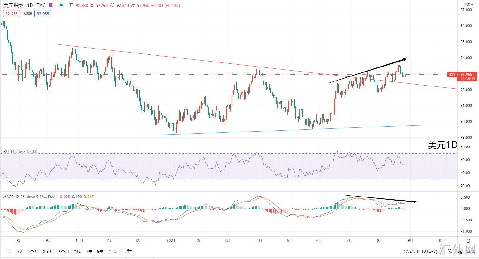 当前来说,影响美国经济恢复的最大原因任然是冠状流行病,但是疫苗的普及,德尔塔病毒尽管来势汹汹,但是对美国经济恢复产生的影响并没有是很大,而伴随9月份各类流行病救助规划的到期以及开学季的来临,许多的人会从新回归就业岗位上,许多的行业会面临井喷式的暴发上涨,美国经济恢复速度会更深一步加速,支撑美元上升的内在原因会愈加强势!