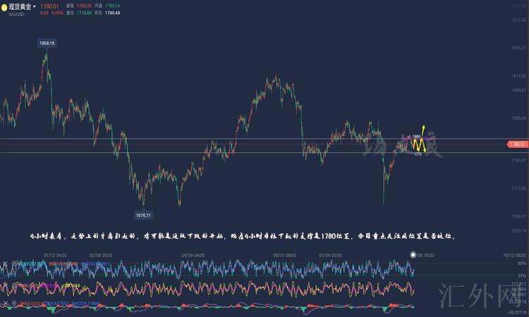 4小时来说,行情上的背离引起的,有机会是波段下挫的开始,当下4小时布林下缘的支持是1780名置,今日着重关注此位置能否突破。只有跌穿此位置后黄金才可完全不如下跌趋势,否则很或许构建一个更大周期的盘震,从昨日的回撤强度来说,前期的击穿也是虚破而已,并没有起到本质性的决定方向的作用,而以下的支持将有机会持续保持于前期的起涨点70一线,而上方的阻力依然保持于1800以下,当前日K线均线体系错综复杂,多空能量均衡对抗,短线内很难判定方向,最佳是试图性跟随买跌等候。综合来说,美盘午夜黄金操作上汤友良推荐以高抛低吸对待;上方注意1795-1800压力,以下注意1780-1775支撑;