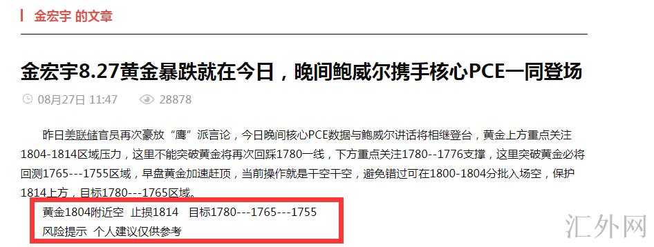 金宏宇8.27黄金1804空单按计划下挫,美盘1800左右持续空