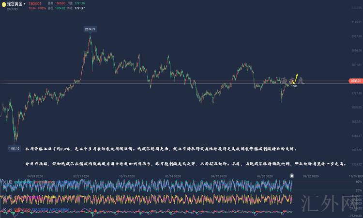 黄金层面,星期五(8月27号)世界面临夏季等候已久的大事件——杰克逊霍尔研讨会,美联储主席鲍威尔将发表演说,市场在此之前一直将该会议看为政策转变的核心节点,但顾虑到delta来势汹汹以及经济报告喜忧参半,投资人已经减弱了削减预计。在鲍威尔发言前,风险情绪审慎,欧股表现萧条,美元在93关键点位震荡,黄金最多击穿1800美元,投资人静候鲍威尔言论。星期五欧市盘中,黄金现货保持升势,当前交投在1795美元左右,在此之前最多刷新1805美元,日间震荡规模接差不多15美元。分析表示,受避险需求和美联储主席发言前美元下挫的支持,黄金价格适当上升。民众将紧密关注鲍威尔发言,以寻求削减刺激举措的线索。在截止今年2月的七个月中,黄黄金价格多部分时间维持在1800美元以上,但此后未能连续击穿该水准。然而,这周价格上升了约1.3%,是三个多月来的最大周线升幅。鲍威尔最近表明,就业市场获得本质性进度会是美联储最终削减刺激举措的核心。分析专员表示,假如鲍威尔在削减购债范围层面传递愈加清晰信号,这或许刺激美元回弹,进而打压黄金价格。然而,若鲍威尔保持鸽派论调,那么黄金价格有希望更深一步上升。