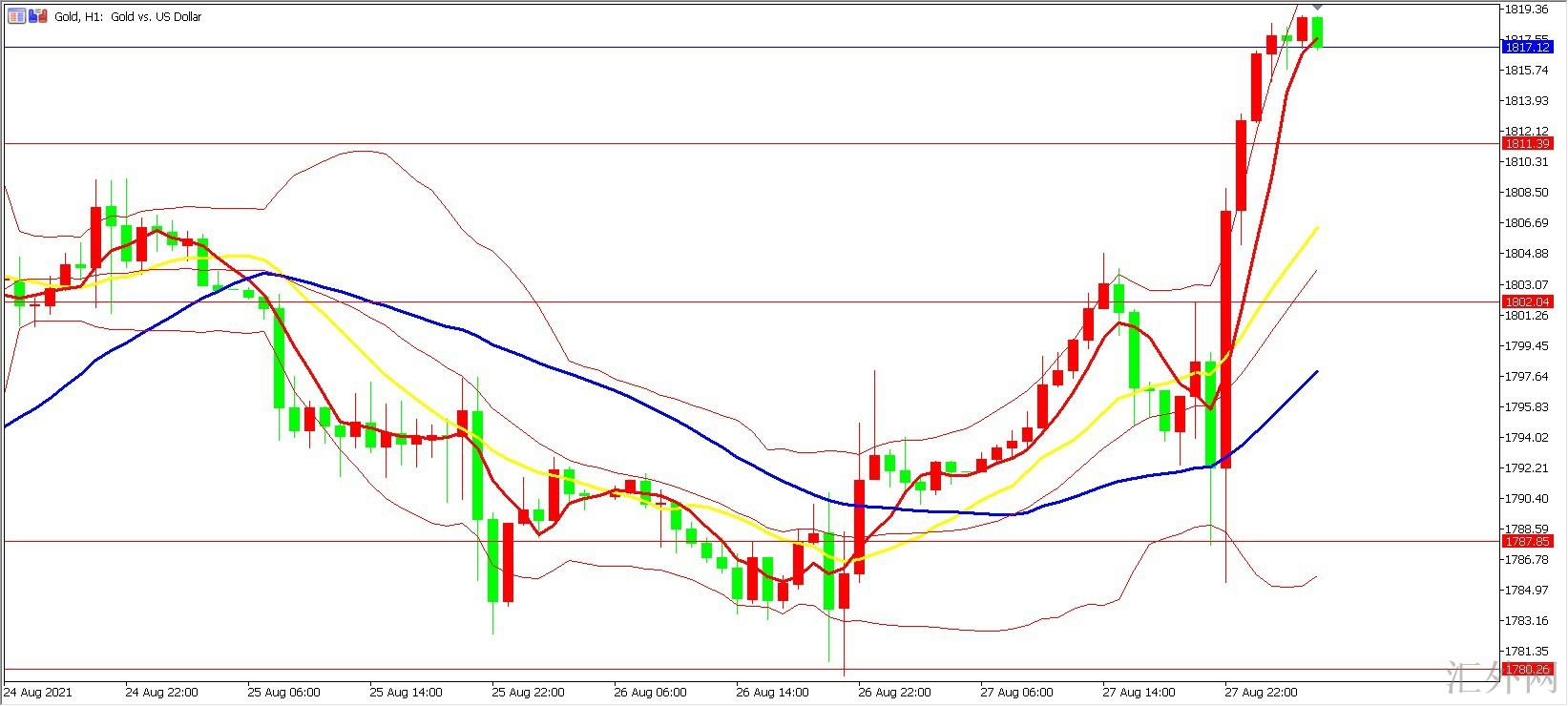 昨晚10点,美联储主席鲍威尔发表发言,表明今年开始缩债是合适的。黄金瞬间上升接差不多20美金,再加之近期地缘政治原因的影响,黄金的避险属性发挥作用,夜里最高冲到1819。其实数据作用都因为技术分析,由于本星期一黄金1776开涨,日K线收大阳,接下去的几天都没有跌穿大阳线的起涨点1780一线,所以黄金又一次涨起来也是技术分析导致。昨天早盘开盘就推涨,差不多没什么回踩,尽管欧元兑美元盘显现过回调,但是都没有跌穿趋势线支撑,所以涨这么多也是必然。星期五分析我们给到1786-1782左右买涨,而且也提示夜里一旦显现单边,要顺势跟进。我们实盘给出1795多,1786-1782多,夜里10点后给出1802持续多,而且多单计划给到了1825一线,尽管没到,下周可以说必到的一个点位。下周我们持续看多,压力就是前高1834左右,这个点位已经多次刷新,一旦突破上方起码有40美金的区域。假使看月线的话,再去1905也属于正常。假如1734遇阻回调,行情还会再回归日K线大阳线的起涨点1791或1784左右。星期五上升突破后回调的低位在1805左右,所以星期一1805上干多。顶底转换的位置在1809左右,依照星期五该种收线1809上方先涨的几率比较大。
