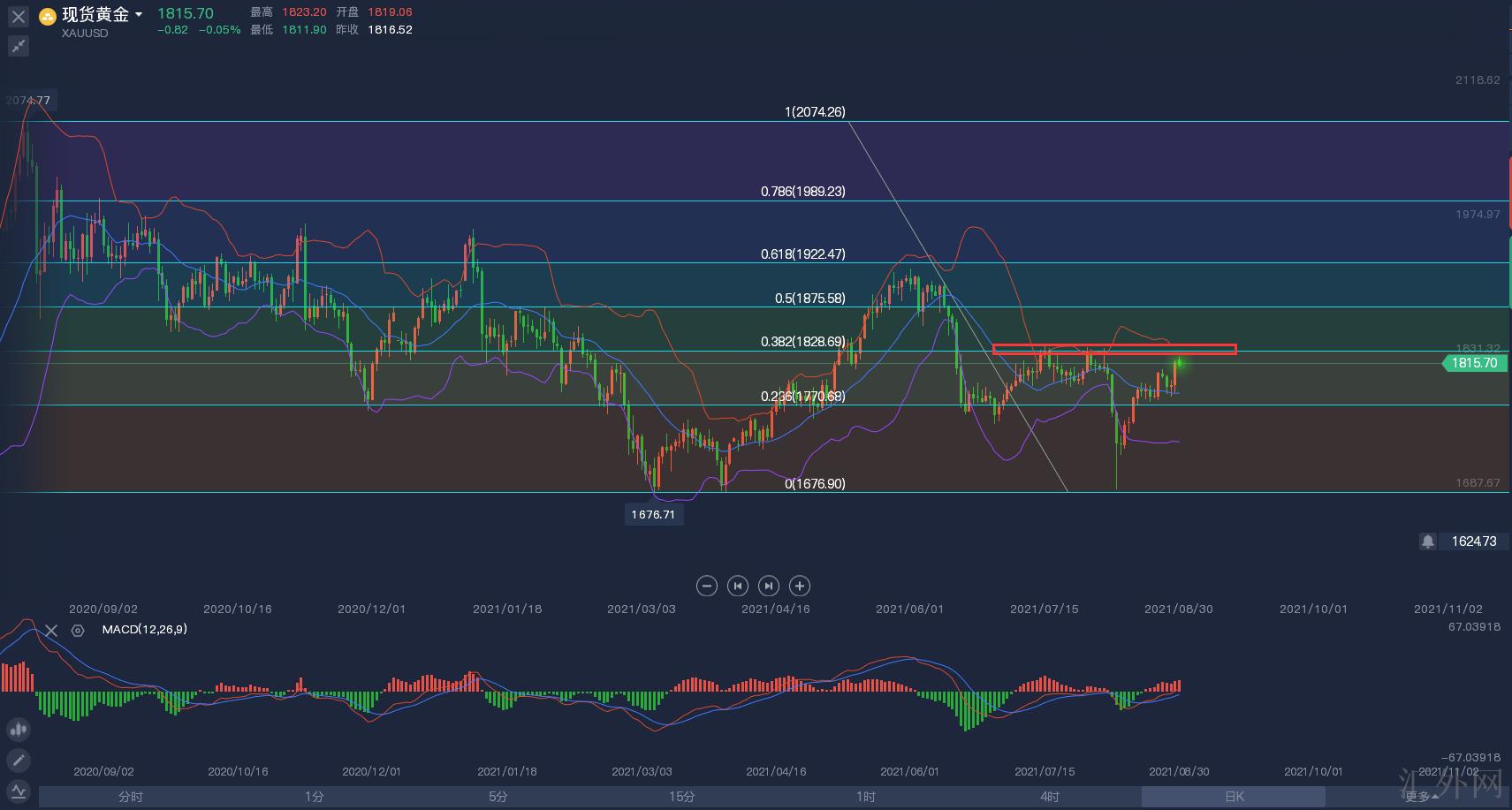 当前,黄金报价1817,已经到达从6月下挫后面的高点,又一次面对核心压力1834的强压,我期望所有交易者都清楚,该点位是会影响黄金后市迈向的,卖方在1834击穿前仍有机会,但是,一旦价格击穿了该强压,将直接望向1870,说到这里,卖方可以斟酌一下怎么操作或者怎么处理手中空单了。