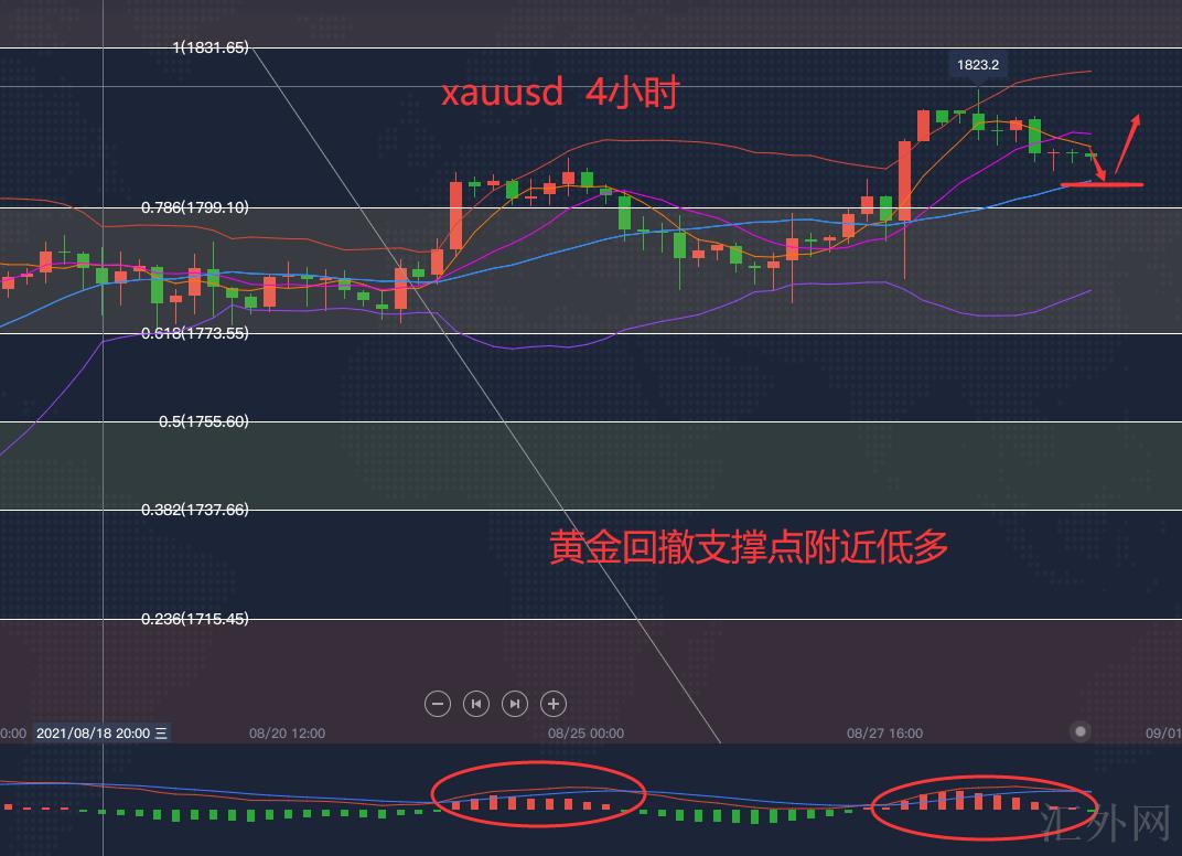 8.31黄金亚盘布局解析:黄金回撤1803/04左右低多,计划目睹1815/18,止损点1797