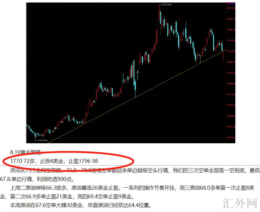 原油上周总的点位都相当准确,星期一亚盘的69.4实盘空单果断下挫于68.0平仓,美盘69.0空单止盈68.2,后69.2左右又一次买跌。