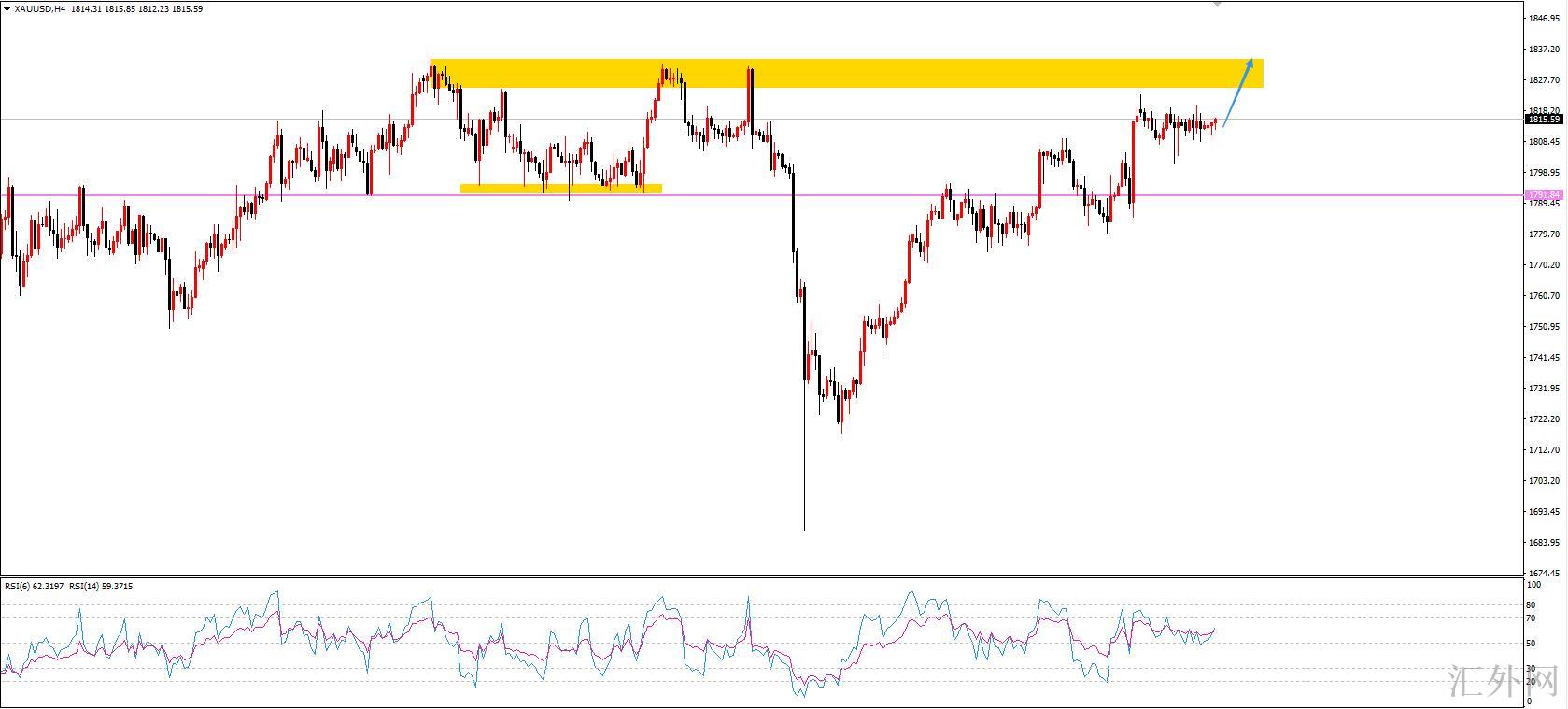 回归盘面向上瞧,其实黄金的行情没啥大改变,依旧保持1800--1820震荡,整体思路上保持昨天即可。
