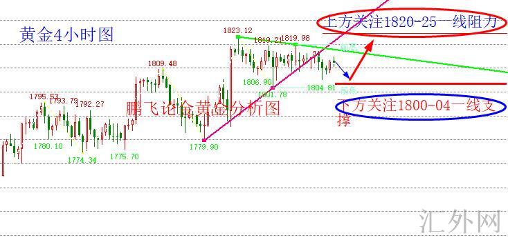 黄金操作策略:支撑1804-1801,阻力1820-1823,盘面的强弱分水线在1811。