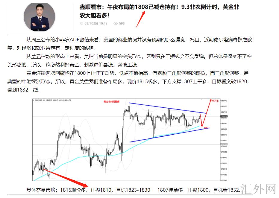 9.3非农黄金交易记录:1808波段持仓止盈1832!晚评1815直接多,止盈1830。