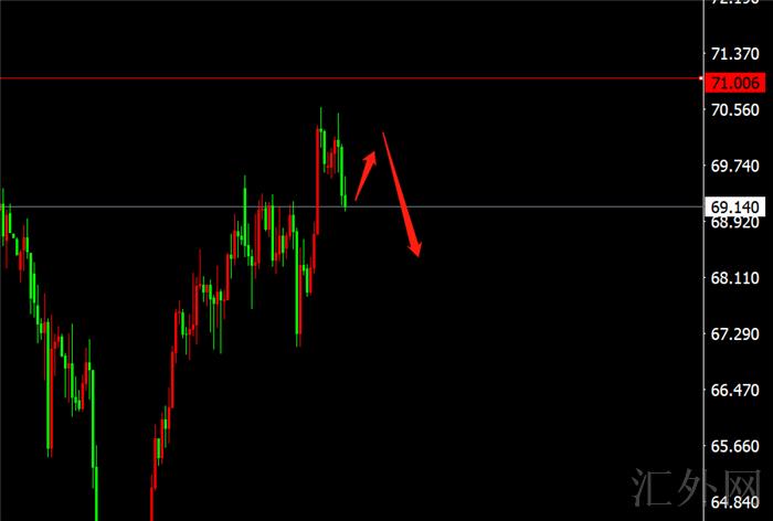 星期一回弹到69.3——69.6买跌,止损50点,止盈看68——67;67突破后更深一步看65左右