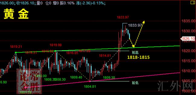 下周先关注回撤的强度,支撑注意1818-1815这个区域支撑点置,在这里可以布局多单,计划看1830到1833一线高位!