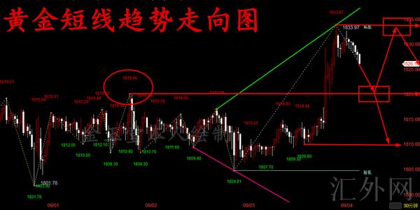 当前我们依旧从多层面来分析下周的市场情形,第一,从黄金技术分析来说,受于星期五非农有好处多头,所以黄金最高也是刷新了1833关键点位,但是毕竟1833关键点位是前期重要高位,于是黄金便开始走跌,那么预期下周开盘,黄金短线会保持走跌,至于接下去短线趋势首要方向如何依旧得看转折点位的击穿!第二,从美元技术分析来说,美元当前以下92是一个相当重要的关键点位,尽管星期五非农就业报告刷新了一下92以下,但是依旧没有完全跌穿,最终美元依旧收盘在92上方震荡。所以当下不管是从黄金依旧美元来说,短时间黄金持续上破1833的几率不大,一是因为于1833是前期下挫时的最高点,二是美元的92关键点位支撑也压抑着黄金持续往上冲的量能,所下方周我们短线持续看黄金回踩走跌,至于能目睹哪里?我们接下去从各个趋势来分析!