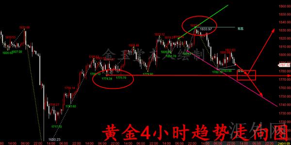 而当下黄金从大趋势来说,前两天我也一直再跟大家强调,当前黄金以下1782关键点位依旧很难跌穿,那么我们大趋势卖方就很难持续保持看跌,就和前期黄金上方1830-1833关键点位很难保持立住买方一样,黄金便开始走跌了。所以我们大趋势当前已经很显著了,只有等以下1782关键点位强劲跌穿,而且以下前期核心支撑1775关键点位也陆续跌穿,黄金卖方才可更深一步强劲,而且一旦跌穿,以下将更深一步目睹1750,甚至于1700关键点位,但是假使以下1775-1782关键点位再次试探依旧很难跌穿,那么俗话说物极必反,黄金或许会下方方1775-1782作为最后买方强劲支撑继而转为上升,上方则再次目睹1810上方,更深一步再次目睹1830-1833前期高位,所以我们下周需求针对黄金的具体击穿情形继而来分析黄金多空趋势如何把握!