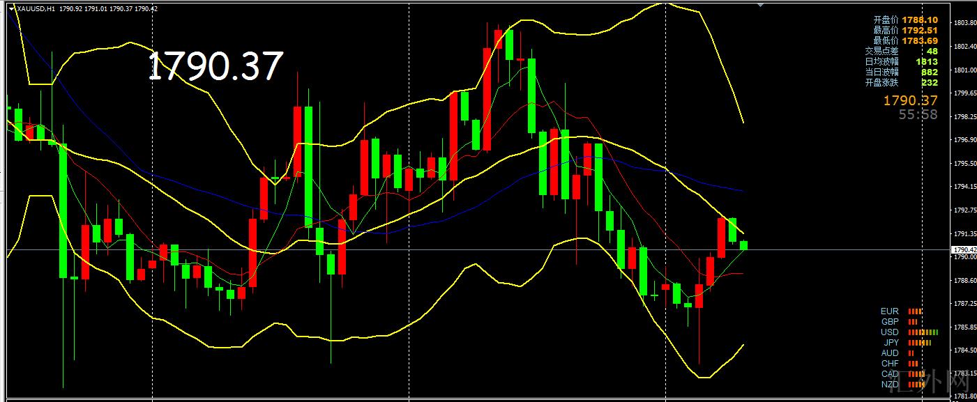 从4小时来说,黄金保持区间震荡,当前处在短时间线左右运行,短时间线金叉但方向混乱,中期线死叉但方向混乱,MACD往上运行,KDJ朝下运行,指标看空。黄金保持在区间内震荡没有方向,均线形态看也是震荡, 综合来说,黄金今日交易参考上推荐高空低多;上方注意1806一线,以下注意1770-1775一线;