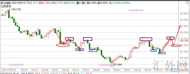 从美元当前来说,后市还会持续向上冲,但是当前短暂会回踩支撑在上去,从斐波那契向上瞧可以目睹92.6这里恰好是0.618支撑,那么美元这里或许会显现的就是回踩618支撑在持续向往上击穿位上涨高达93.2-93.3区间。