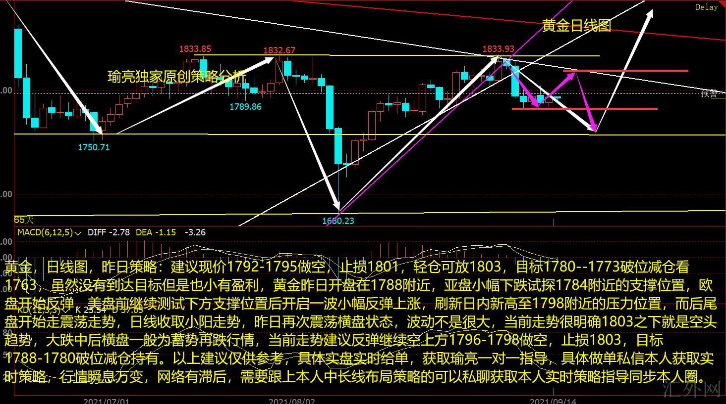 黄金,日K图,昨日策略:推荐现价1792-1795买跌,止损1801,轻仓可放1803,计划1780--1773突破减仓看1763,尽管没有到达计划但是也小有盈利,黄金昨日开盘在1788左右,早盘适当下挫试探1784左右的支持点置,欧盘开始回弹,美盘前持续试探以下支撑点置后开放一次适当回弹上升,创下日间高峰到1798左右的阻力位置,而后收盘开始走震荡行情,日K线收取小阳行情,昨日又一次震荡盘整状态,震荡不是很大,目前行情很清晰1803之下就是卖方趋势,暴跌中后盘整一般为蓄势再跌行情,目前行情推荐回弹持续空上方1796-1798买跌,止损1803,计划1788-1780突破减仓持有。以上推荐仅供参考,具体实盘实时给单,获取瑜亮一对一指导,具体做单私信本人获取实时策略,行情瞬息万变,网络有落后,需求跟上本人中长线布局策略的可以私聊获取本人实时策略指导同步本人圈。