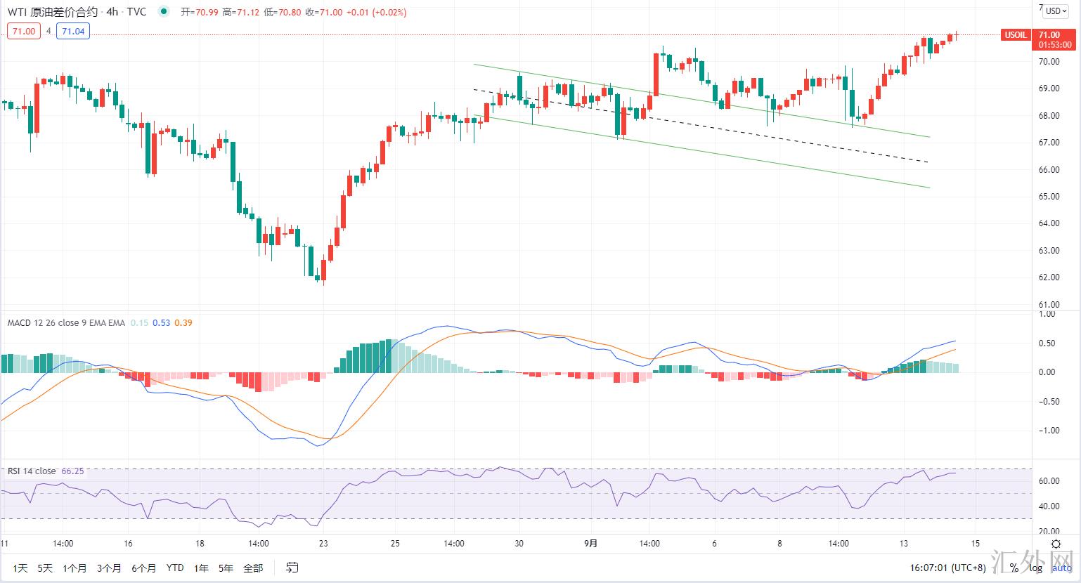 从小时级别的交易量来说,原油的这个下探通道,配合前期原油从61.7的回弹,是一个比较标准的看多旗型,而且原油已经击穿了通道上缘的抑制,在9月6号开盘后面就对通道上缘执行了回踩,但是仍未跌穿,我也是从这一刻坚定了看多原油的决心,只要原油不跌穿这个通道的上缘,看多旗型就有成立的机会,此后原油一直保持在68左右震荡运行,对通道上缘又执行了两次试探,但是都没能跌穿,我在这个过程中也多次进场买涨原油,也有被扫损,被扫保本,但是都没动摇我买涨原油,终于原油在上星期五迈出了推涨,这周开盘后面持续上升,当前已经在试探71了。坚持终于得到了回报!
