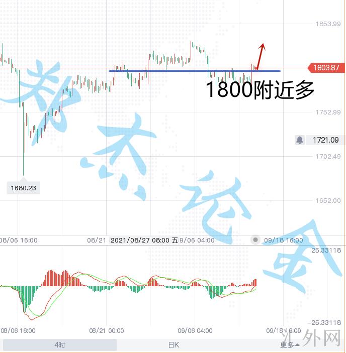 技术分析来说,黄金昨日下探回涨收高,最低回测1780一线启稳,上方击穿1800抑制,最高到达1808左右。4小时接连两根大阳线,解脱了上周的盘整震荡行情,迈出一次小单边。再加之25美金的大涨,有了强度也有了保持性。K线昨日击穿1800后,收盘在1800上高点盘整整理,是中持续涨的信号。今日持续低多。