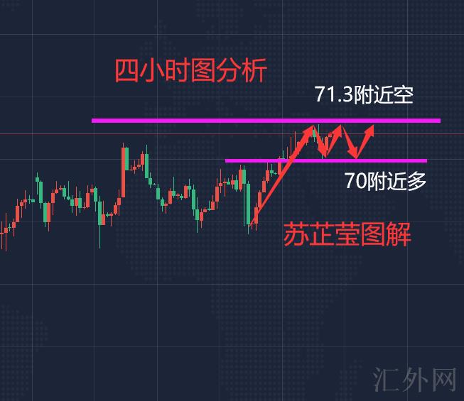 原油昨日先涨后跌,芷莹给出71.2左右空策略准确兑现利润!实盘空单也已获利!四小时布林线开口往上发散,中轨支撑在70.2左右,底部支撑在68.9一线。一小时布林线走平,MA20以下支撑在70.3左右,上方抑制在71.3一线。目前价位在70.8左右震荡,多空僵持。今日原油操作苏芷莹推荐高空为主,低多为辅。