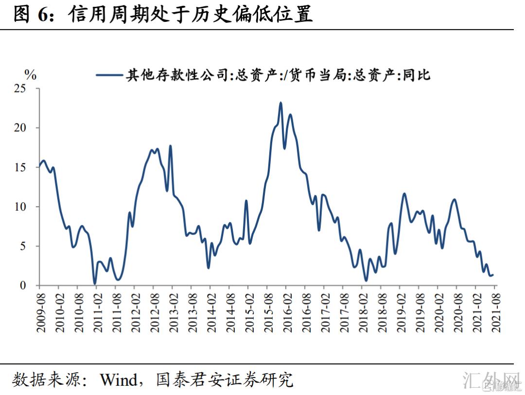 我们从其余存款性公司总资产占货币当局总资产比重的增速来说,当前信用周期已经靠近历史底部,尽管8月信贷报告依然存在结构性困难,但票据冲量的情形有所转好,8月中央银行提早召开货币信贷座谈会,宽财政、宽信用预计发酵的时间或许要蔓延到2022年初,债券市场需求对这一点维持审慎。
