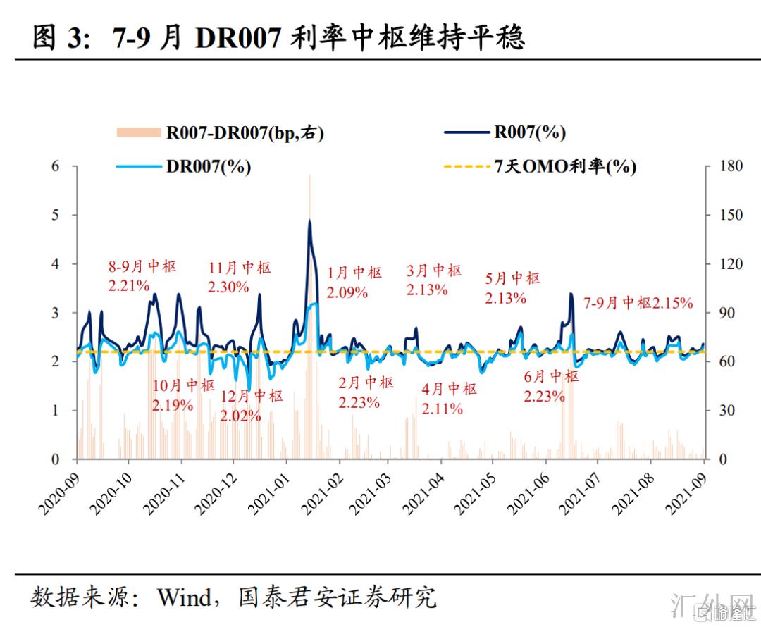 9月份中央银行MLF平量对冲,我们觉得原因有三个:一是超量续作的必要性不强,尽管9月份以来资金利率连续缩紧,但货币政策盯住的DR007利率稳定,与7-8月中枢一样保持在2.15%,财政开支提速还将一定程度填充资金空缺;二是降准资金消耗后不支持持续缩量,7月全面降准放出1万亿资金,7-8月MLF缩量在情理当中,但当前降准资金差不多消耗的差不多了,隔夜资金利率中枢适当抬升,平量续作更符合中央银行一以贯之的风格;三是MLF报量需求偏中性,当前1年期同业存单利率依然差于MLF利率胜过20bp,对银行来说,没有超标报量MLF的活力。