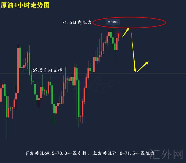 回弹71.0-71.5左右买跌,止损0.5美金,计划看70.0-70.5左右;