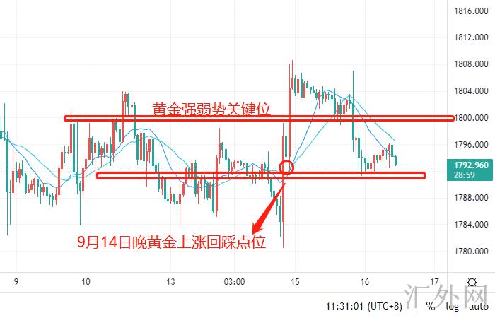 就当前来说,黄金昨晚的下挫是没有跌穿9月14号晚黄金刷新1808前回踩的点位1790左右低位的,也就是说黄金保持住了1790以上震荡区间的总体高点。从这层面来讲,黄金在震荡区间高点执行调动,是利于买方的,后面依旧要持续上升的。